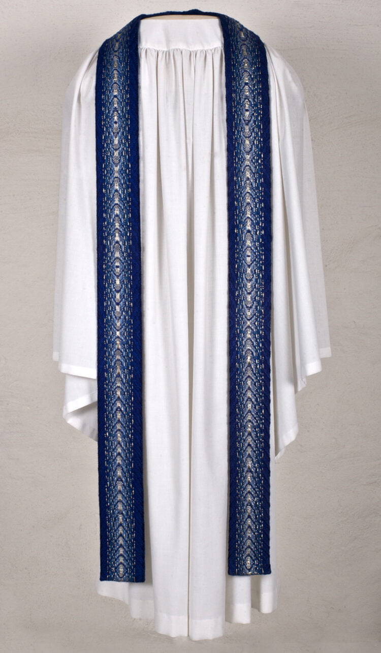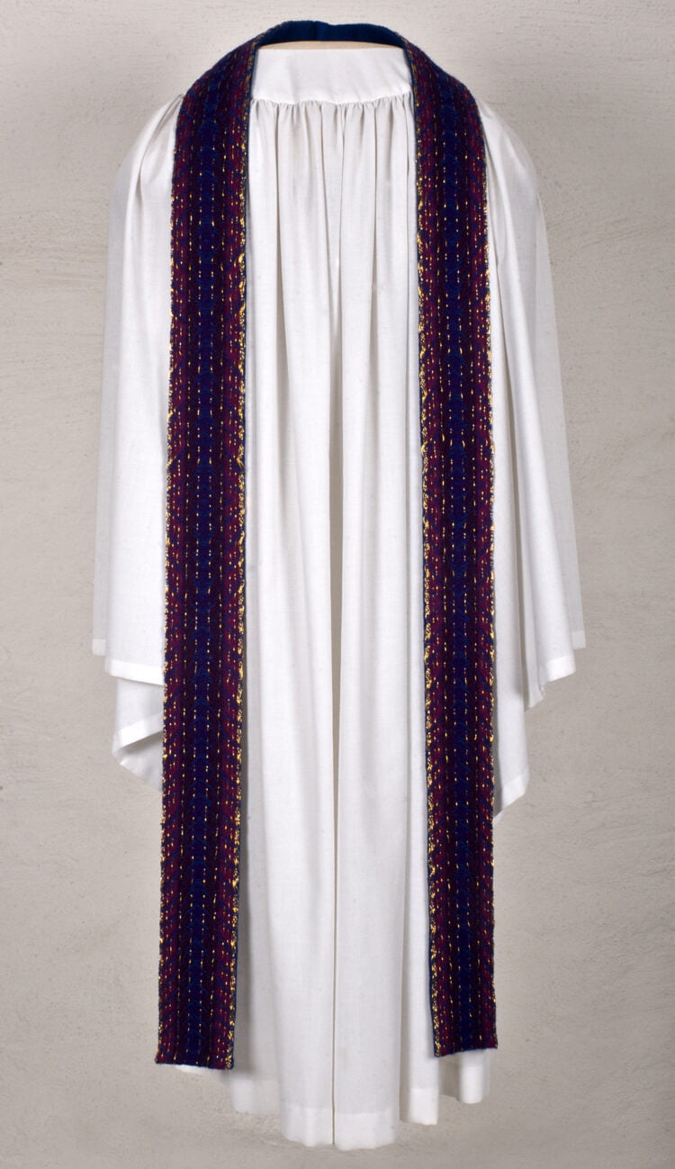 Handvävd lila mässhake med sprund i hals